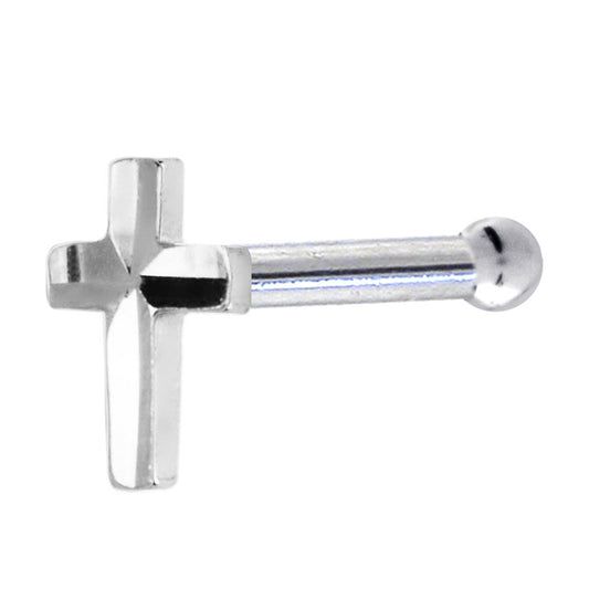 Solid 14K White Gold Raised Cross Nose Bone