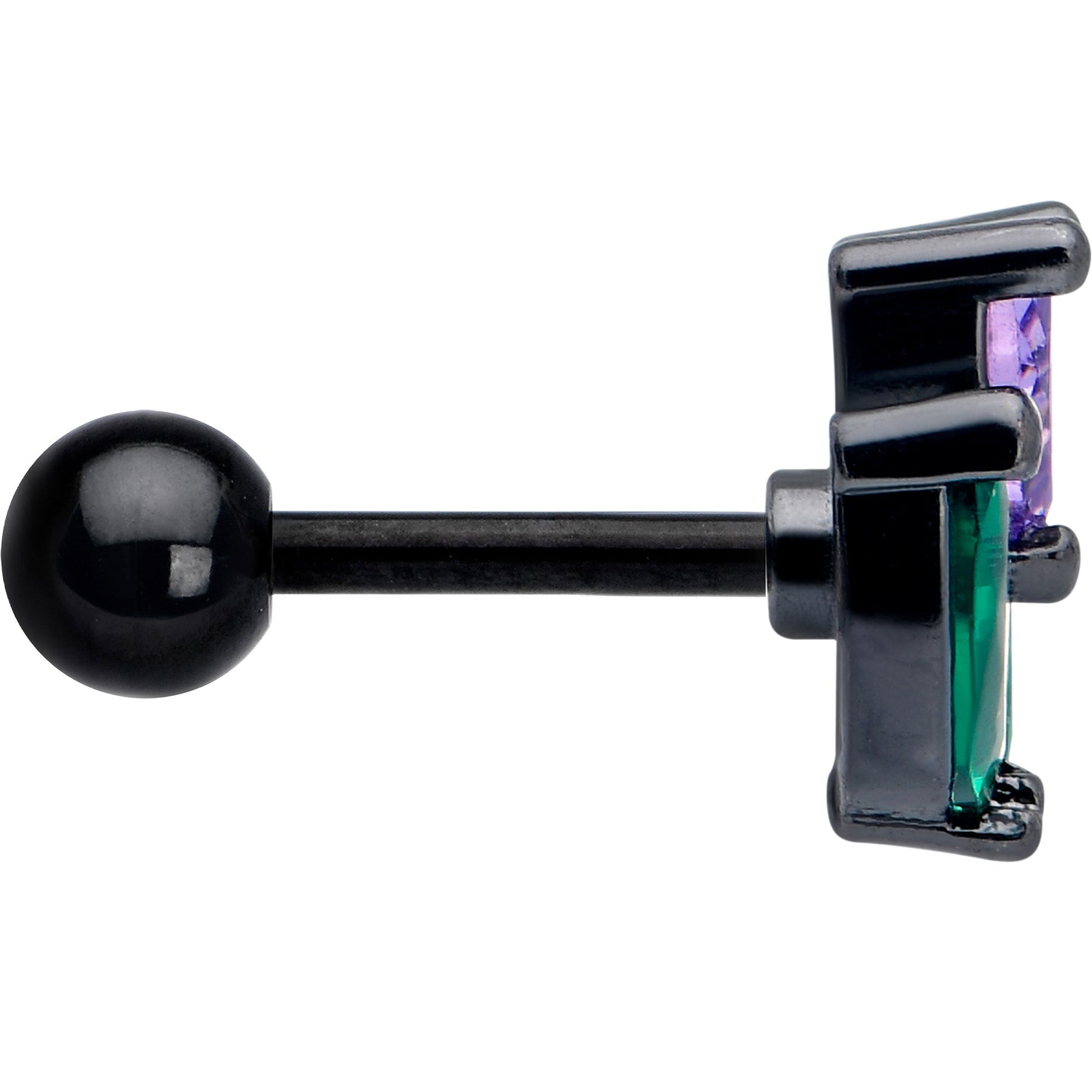 16 Gauge 1/4 Purple Green CZ Gem Black Love Flower Cartilage Earring