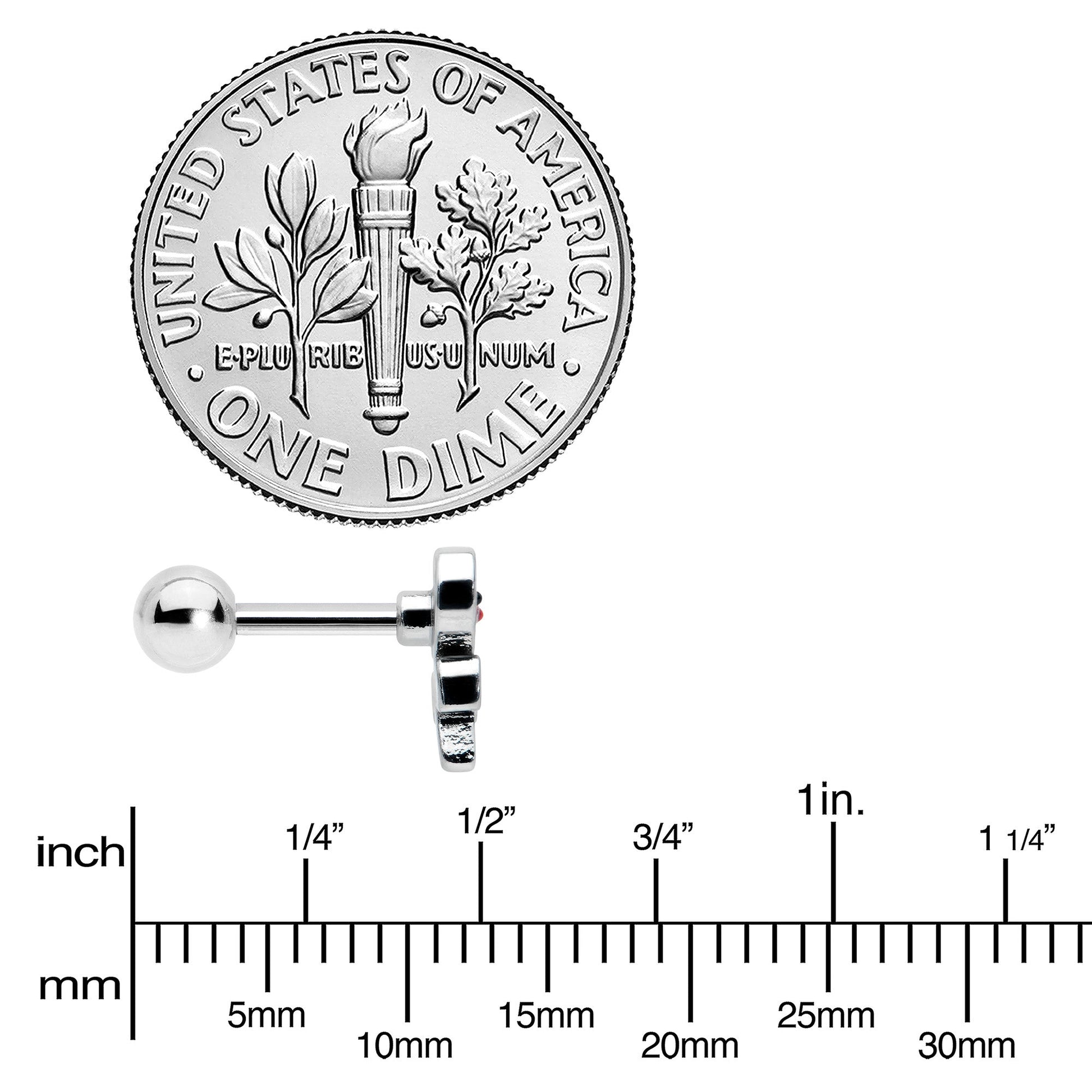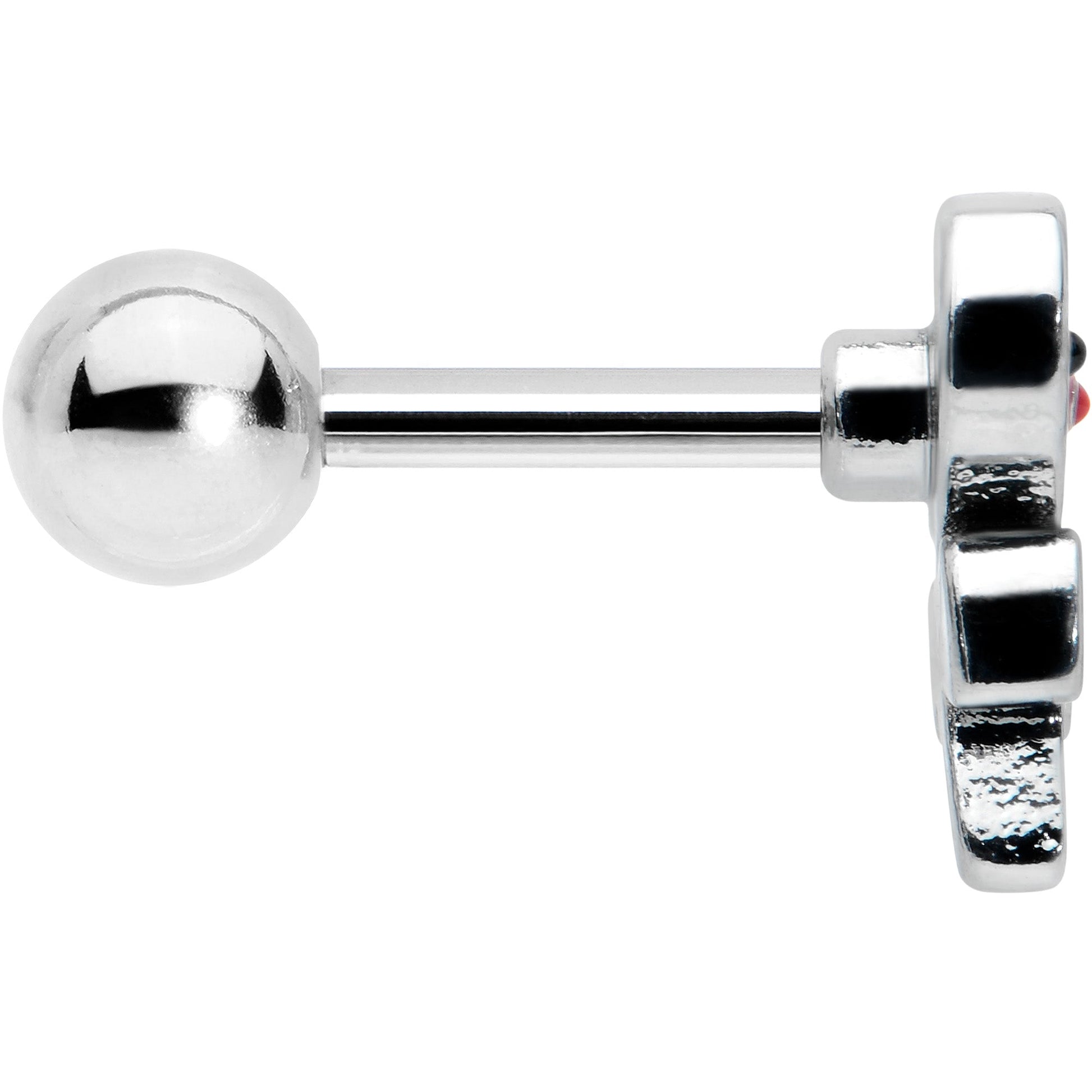 What could be sweeter than the loving lolly on this 16 gauge tragus stud? It's made with a 6mm durable 316L surgical grade stainless steel straight barbell with a 4mm ball end. It features a lollipop charm, with the candy portion composed of a heart and wearing a cheery face. It's further embellished with a green bow at the top of the white-inlaid stick. You can even rock it in multiple piercings including tragus, helix, and some conch piercings. You can't help but fall in love with with this sweet, candy-themed cartilage piercing ring!Specifications