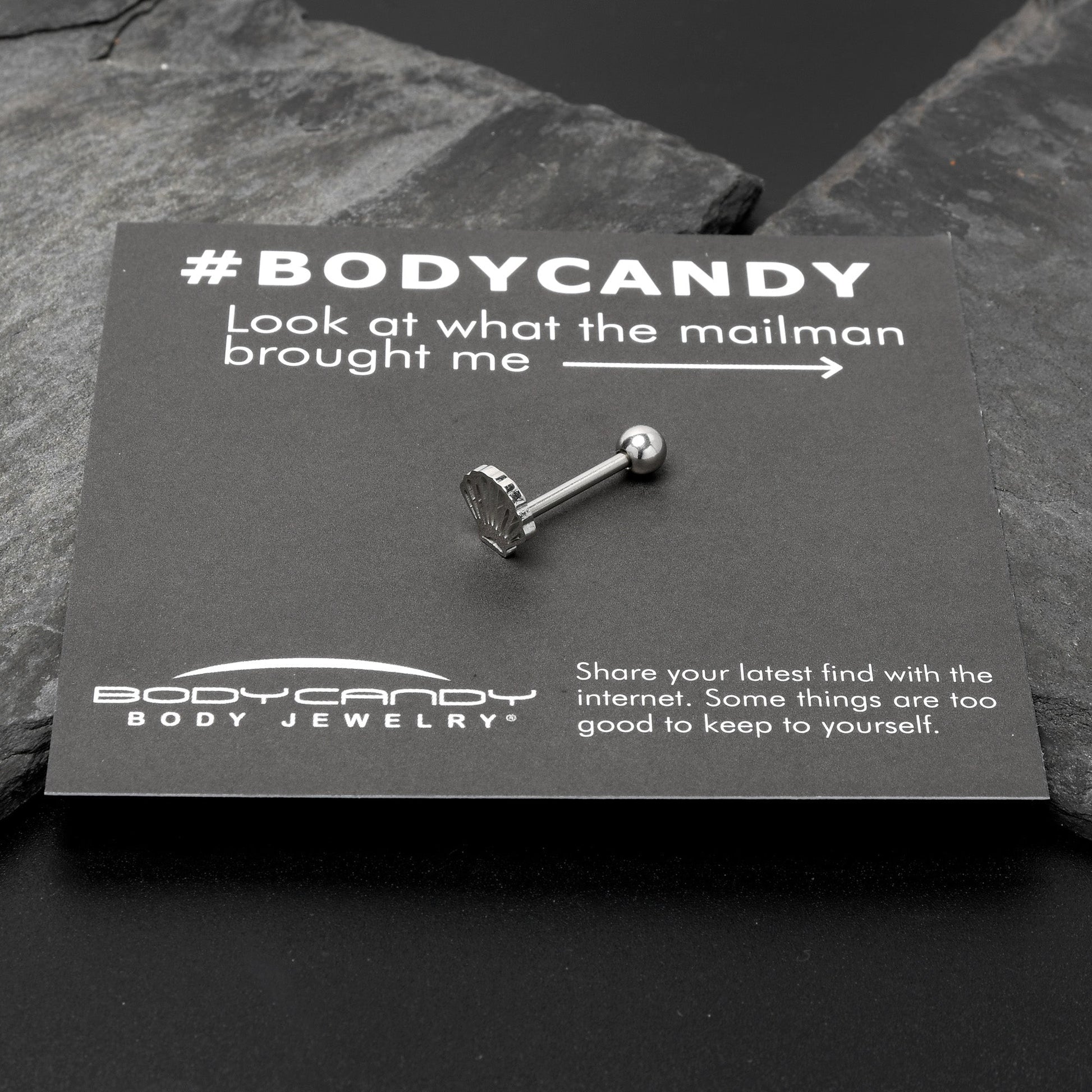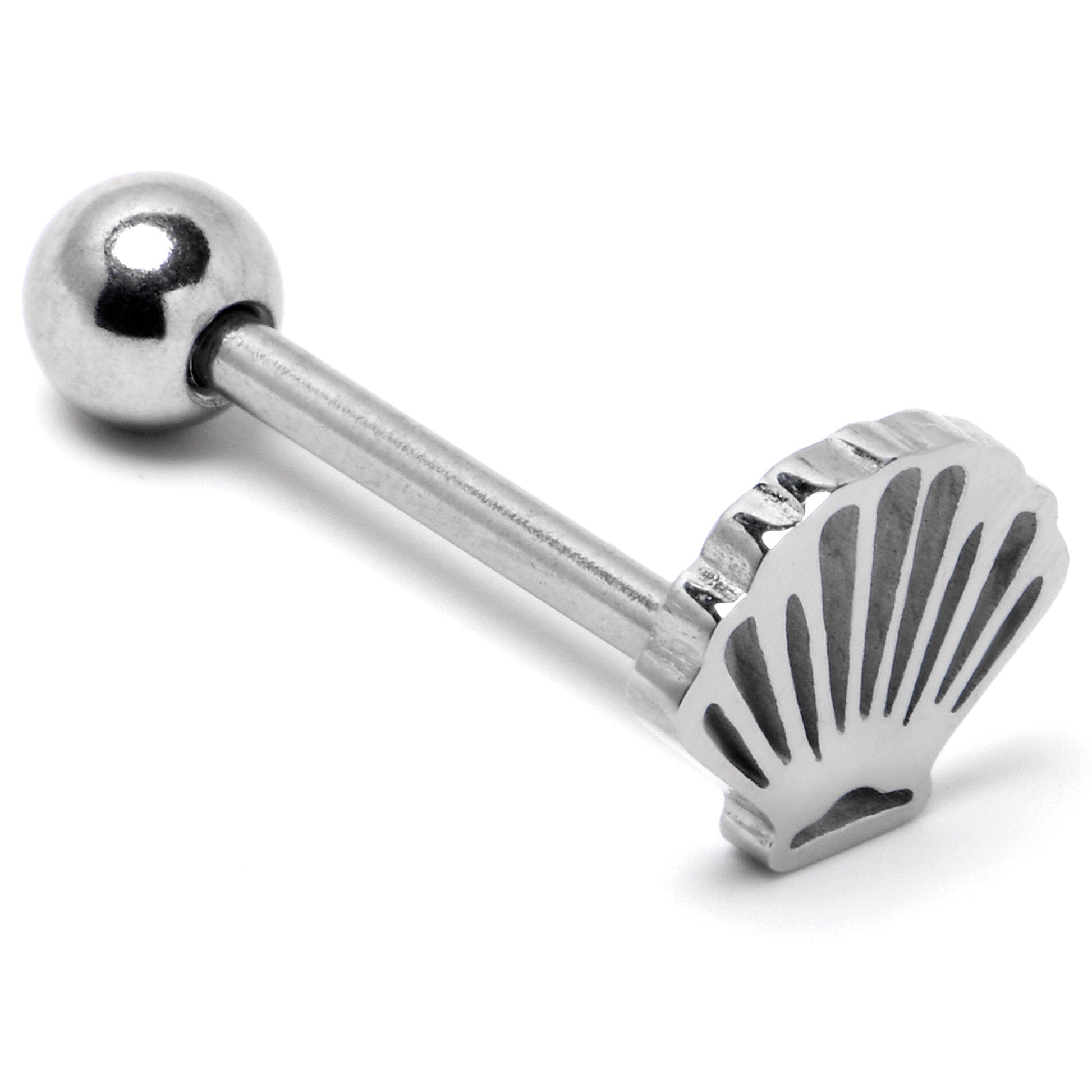 316L Surgical Steel Scalloped Sea Shell Barbell Tongue Ring