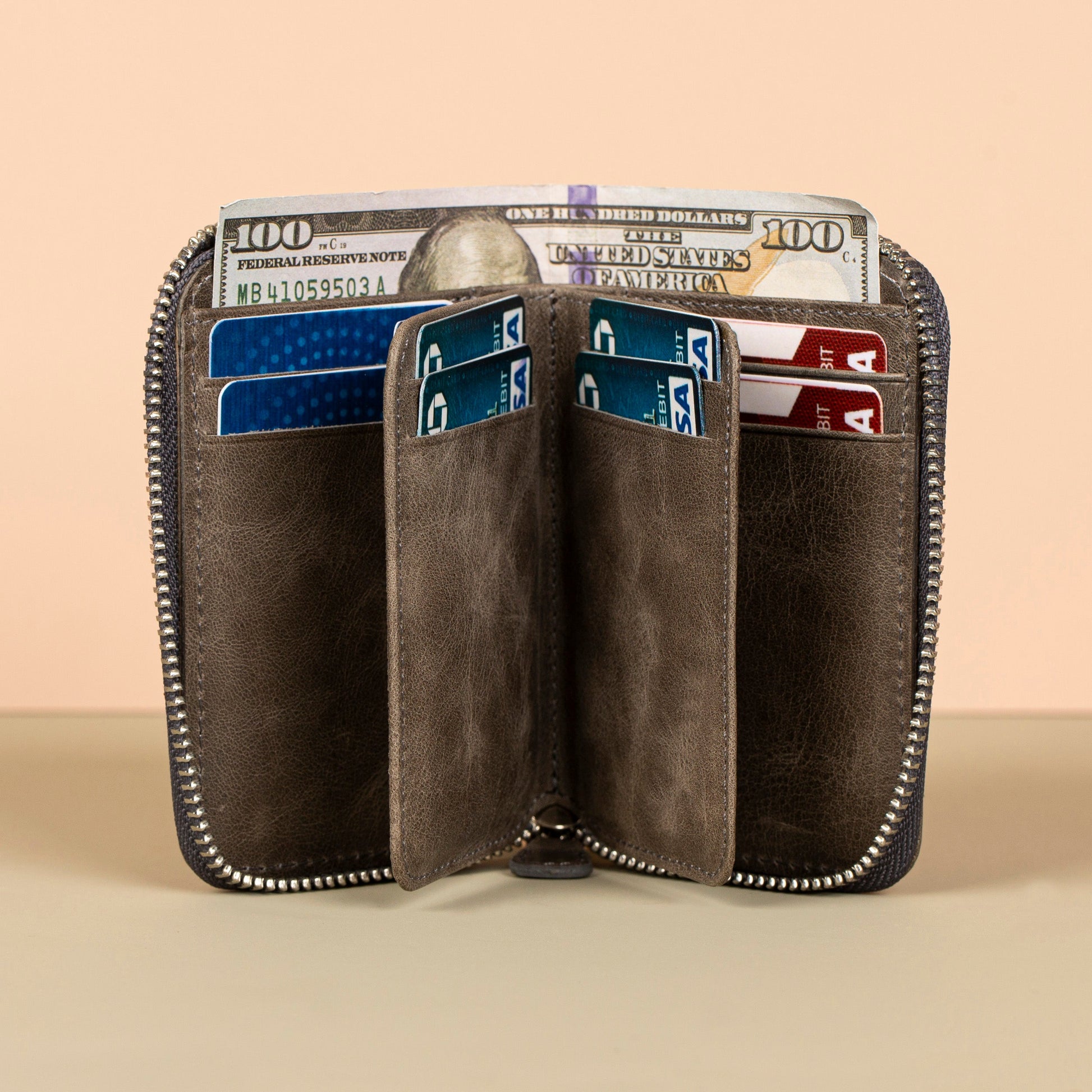 Premium Leather Zipper Wallet - Dark Gray - Anniston