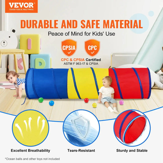 VEVOR Kids Play Tunnel Tent for Toddlers Collapsible Gift for Boy and Girl Play Tunnel Indoor and Outdoor Game Red/Yellow/Blue