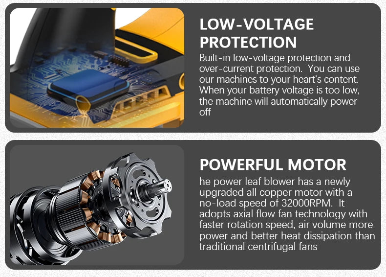 • 💨 32000RPM Max Power: Shreds snow, dirt, and debris like a sonic boom.