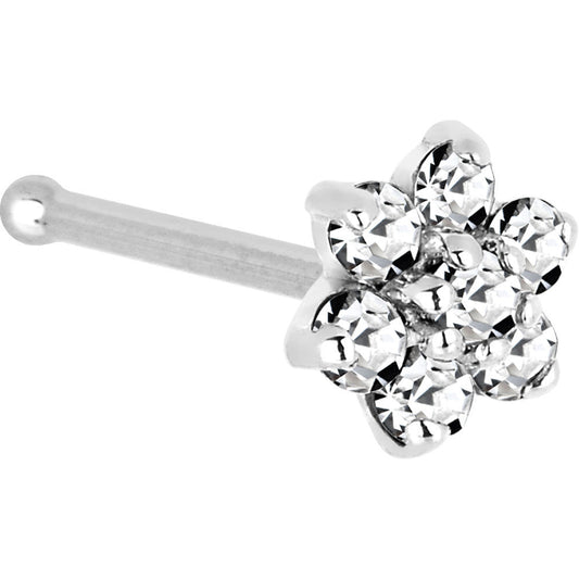 Solid 14K White Gold Clear Cubic Zirconia Flower Nose Ring
