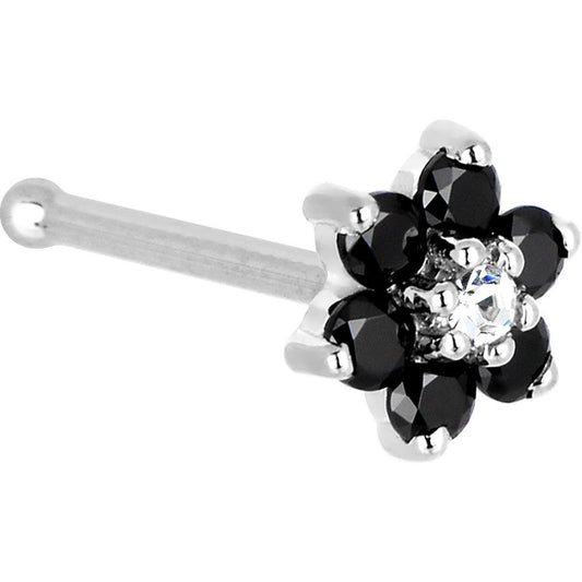 Solid 14K White Gold Black and Clear Cubic Zirconia Flower Nose Ring