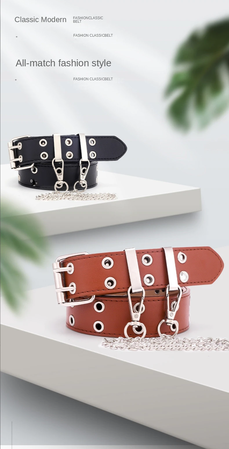 Women's Punk Chain Belt - Alloy Buckle, PU Leather