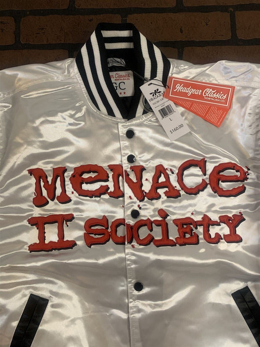 MENACE II SOCIETY Headgear Classics Streetwear White Jacket~Never Worn~ S - 2XL