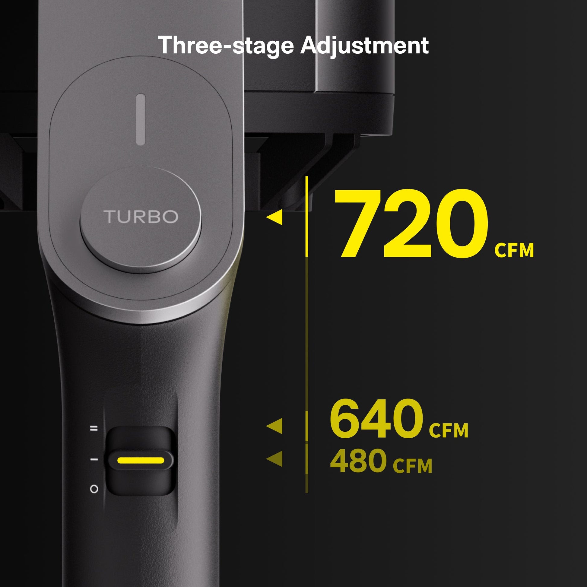 • Variable Speed Dial – Offers up to 720 CFM airflow and 120 MPH airspeed, letting you adjust for different tasks with just one twist.