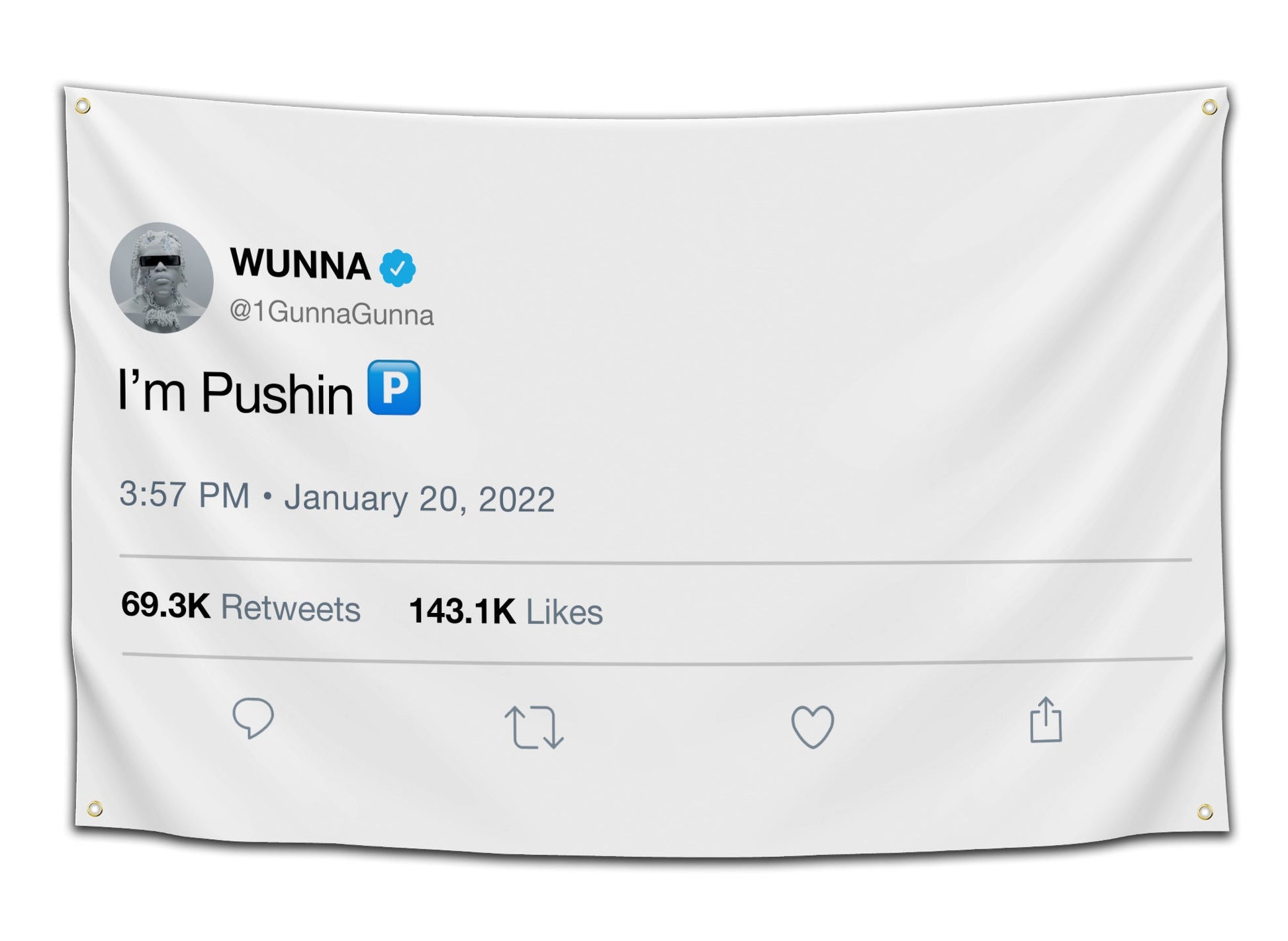 Rock the iconic “I’m Pushin P” tweet from Gunna with this viral flag – meme gold for dorm rooms and party spaces.