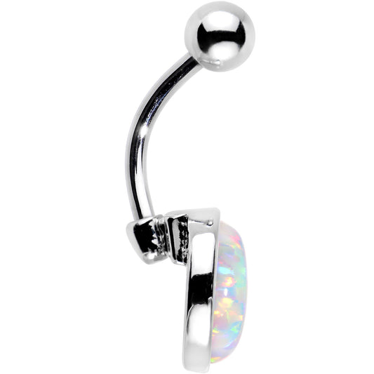 Wear Me White Synthetic Opal Stainless Steel Bottom Mount Belly Ring