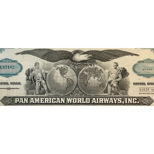 Vintage Teal Pan Am World Airways Stock Certificate Soars Again