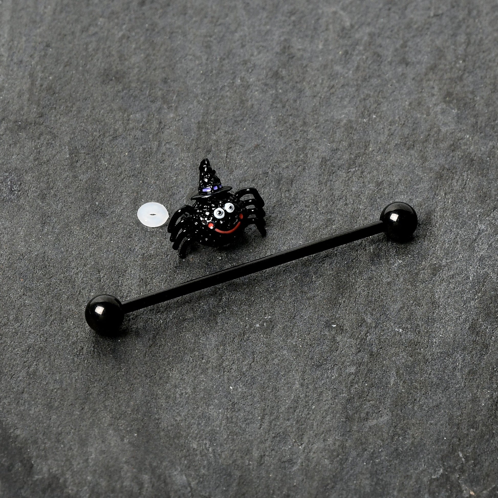 14 Gauge Black Halloween Smiling Witch Spider Industrial Barbell 38mm