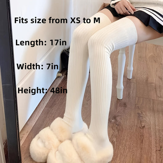 Women's Solid Ribbed Over-the-Knee Socks, Comfy & Warm Thicker Thigh High Socks