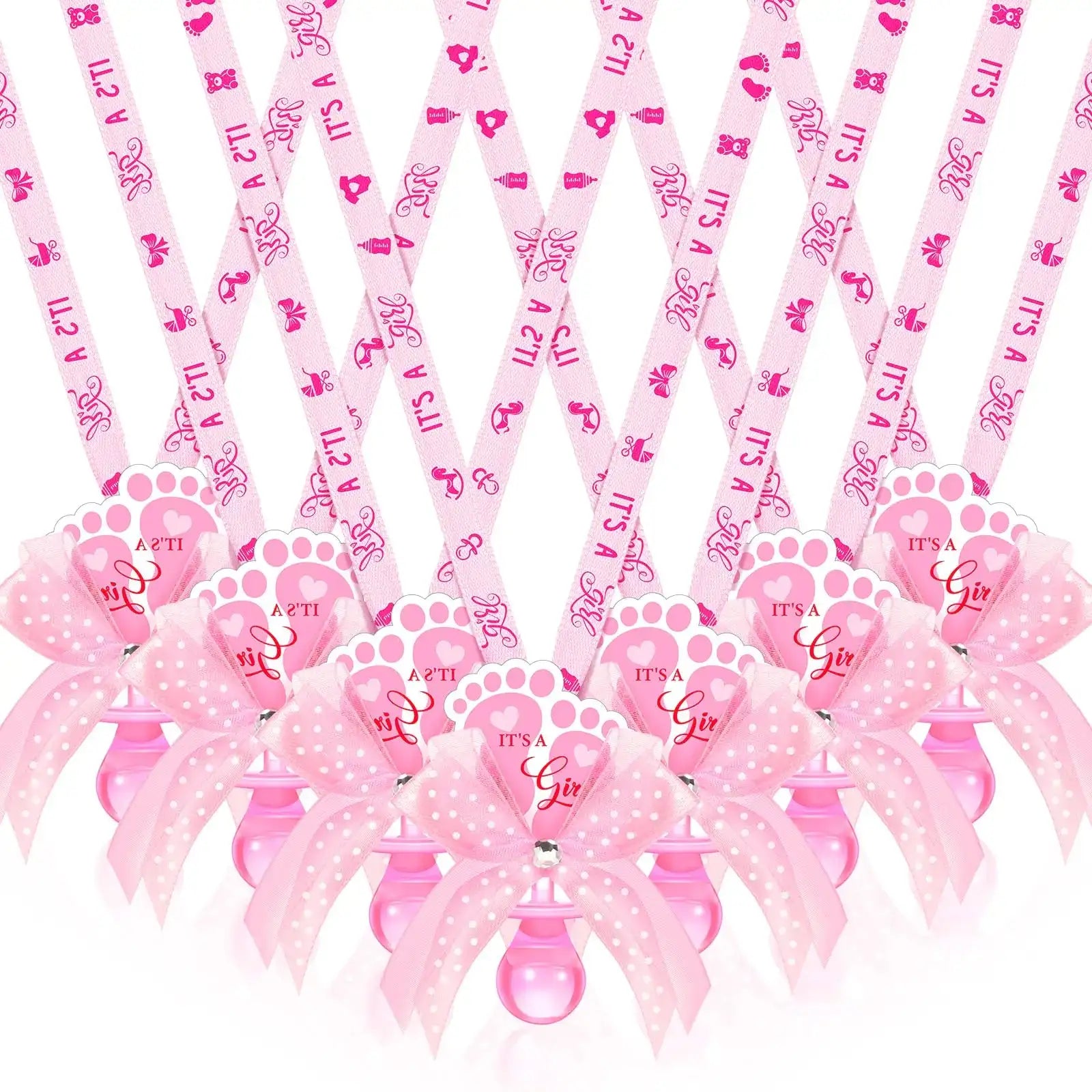 XunYee 36 Pcs Baby Shower Necklace Gender Reveal Pacifier Necklaces Cute Feet Acrylic Baby Pacifiers Necklaces for Baby Shower Funny Pacifiers for Babies Party Favors(Pink)