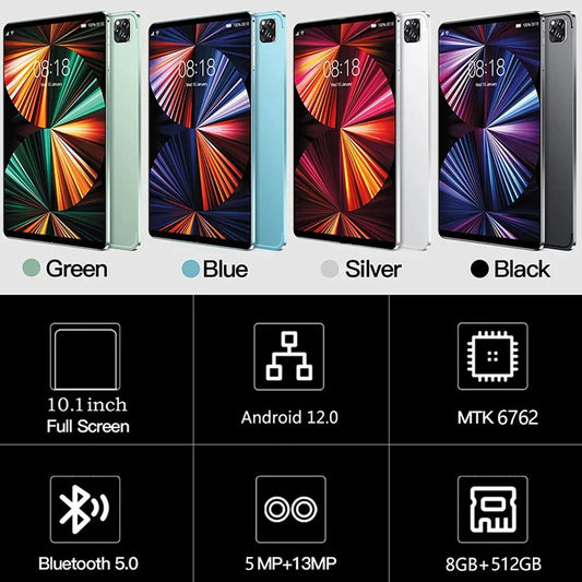 New 5G Pad Pro 10.1-Inch Android Tablet with 8GB RAM, 512GB ROM Octa core Support for calling, Dual SIM card 8000mAh Battery