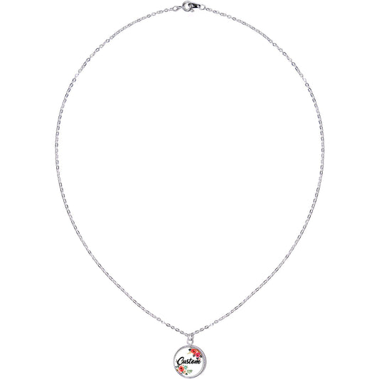 Custom Floral Personalized Name Silver Plated Chain Necklace