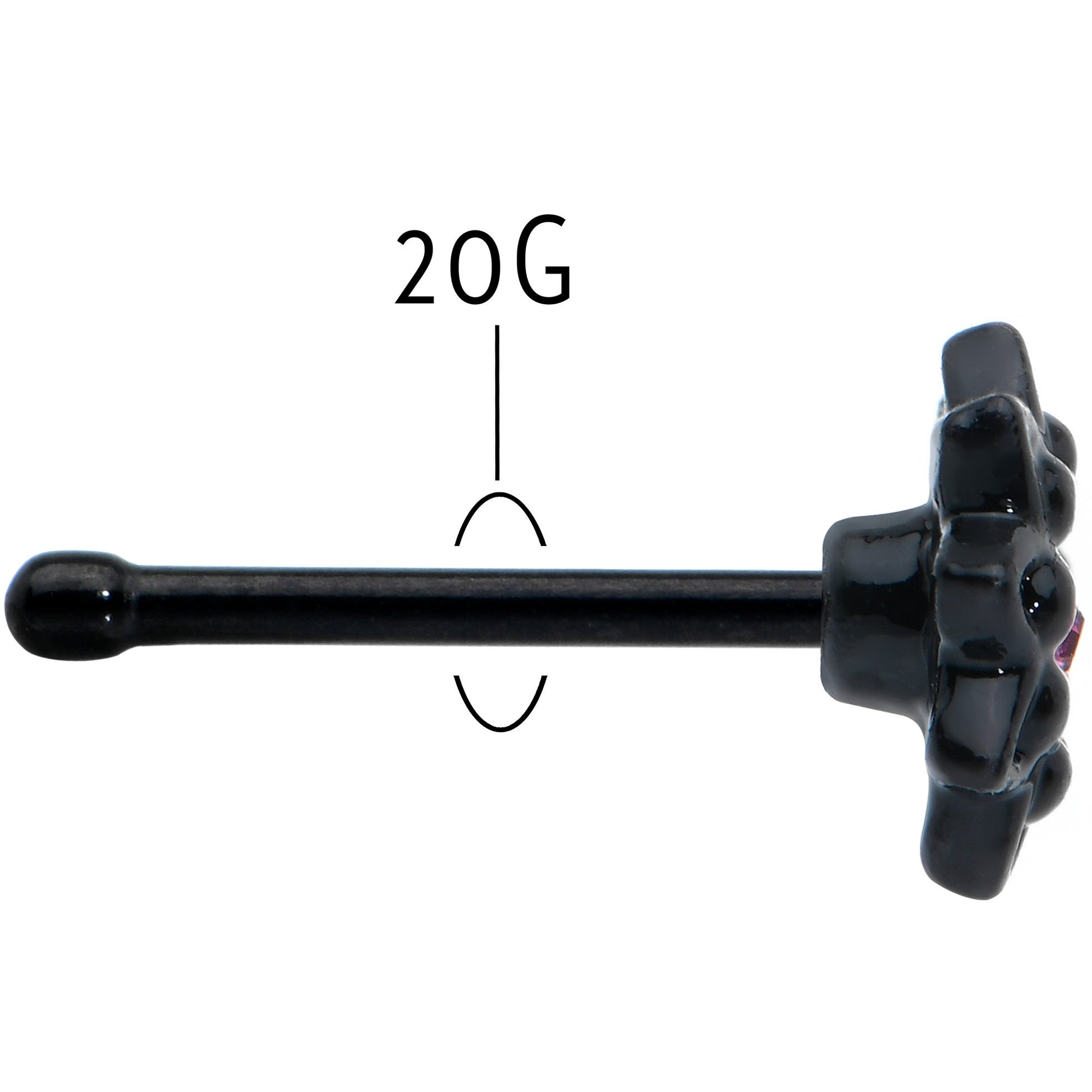20 Gauge 1/4 Pink Gem Black Starry Flower Halloween Nose Bone