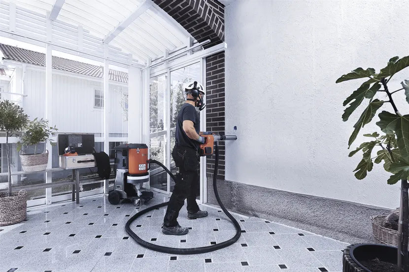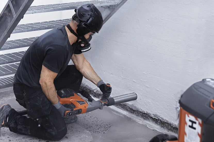Husqvarna DM 540i is a powerful battery drill motor optimised for handheld drilling of diameters up to 75 mm. It can be used in light reinforced concrete for both wet and dry drilling and other suitable materials include bricks and light weight blocks. DM 540i can be used with the DS 150 drill stand for drilling of diameters up to 100 mm and with built-in connectivity, you can easily monitor machine location, runtime, service intervals and receive wireless updates through FOTA (firmware over the air). Power is supplied by BLi-series batteries and the machine is compatible with Husqvarna BLi200/BLi300 batteries. Ease of use and exceptional ergonomic characteristics such as low weight and a well-balanced machine body make it an excellent choice for drilling underneath sinks, in narrow corners or other tight spaces. Other applications include plumbing pipes, electrical sockets, cables, ventilation and air conditioning installations.