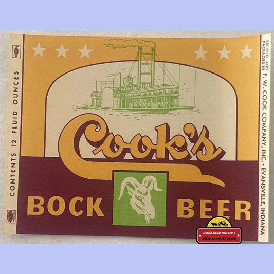 Rare 1940s Cook's Bock Beer Label with Steamboat and Goat Design