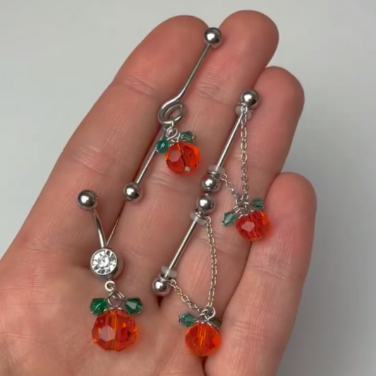 14G Green Orange Gem Pumpkin Halloween Dangle Project Bar 38mm