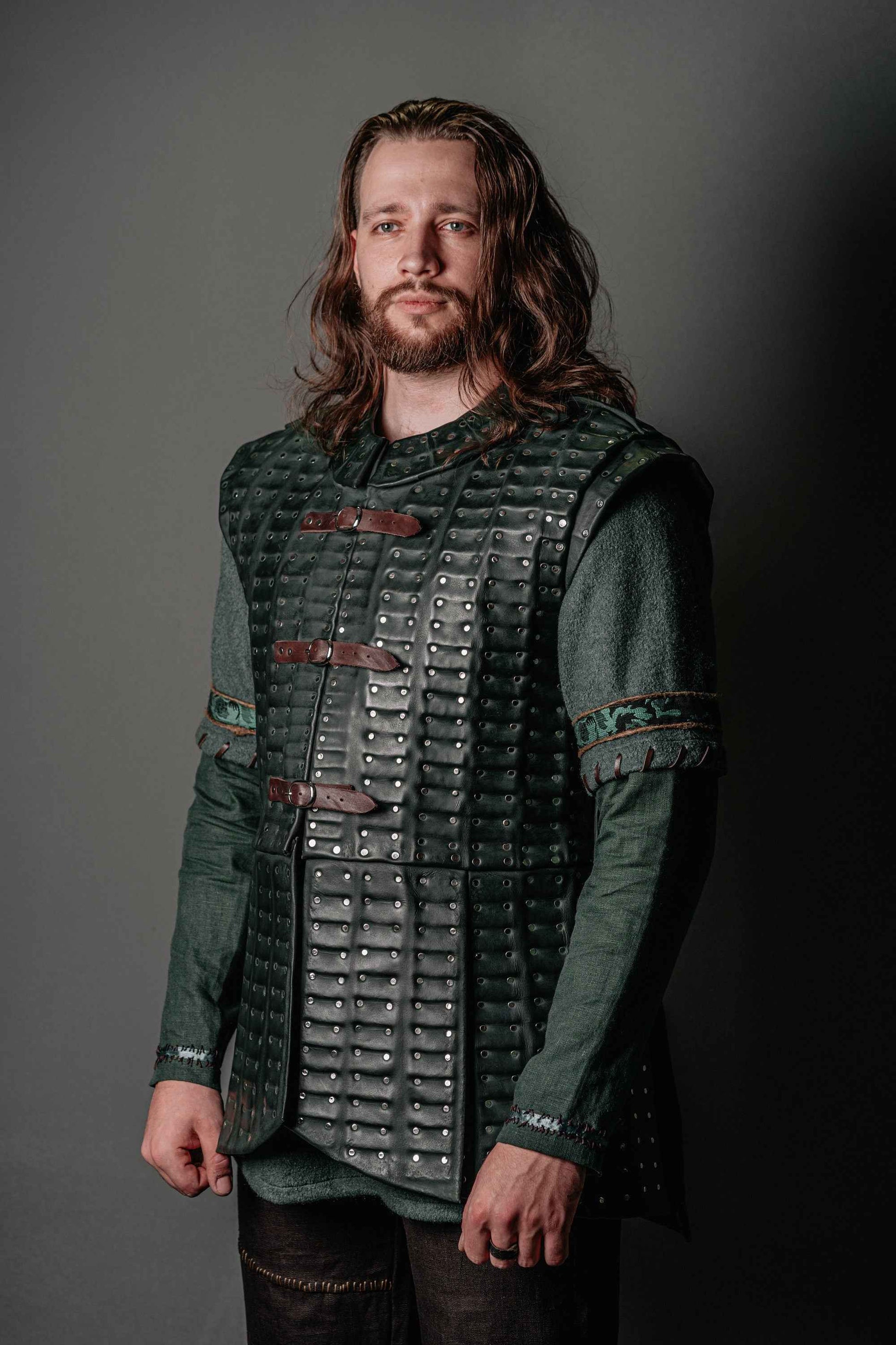 Prince Caspian green brigandine for LARP and cosplay made by SokolWorkshop. Will be made according to your individual measurements Artificial aging creates effect of battle ready.