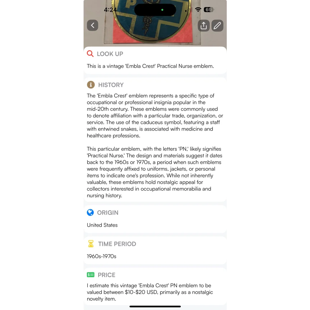 Rare Vintage 1960s Practical Nurse Emblem Embla Crest Collectible