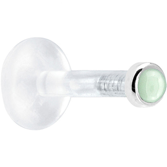 Solid 14K White Gold 2mm Genuine Jade Bioplast Push in Labret