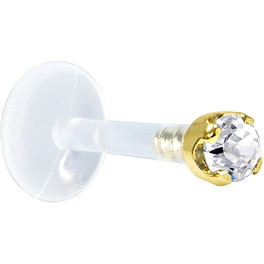 Solid 14K Yellow Gold 1.5mm Genuine Diamond Bioplast Push in Labret