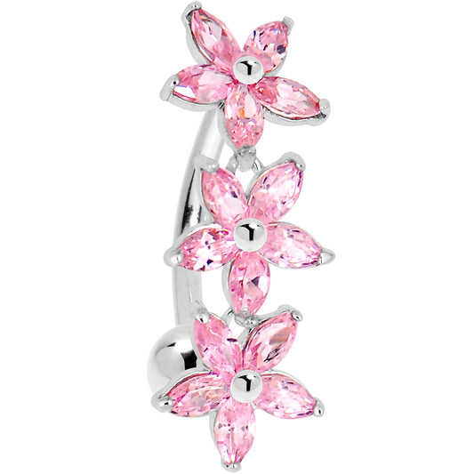 16G Solid 14k White Gold Pink Reverse Cubic Zirconia Lily Drop Belly Ring