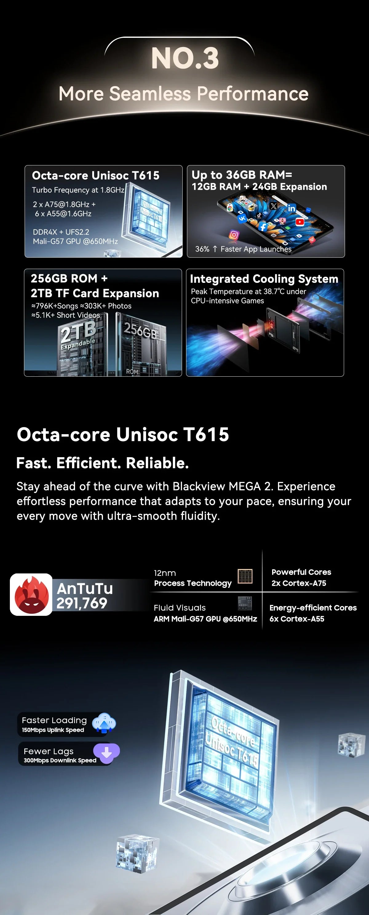 Octa-core Unisoc T615,2 x A75@1.8GHz + 6 x A55@1.6GHz