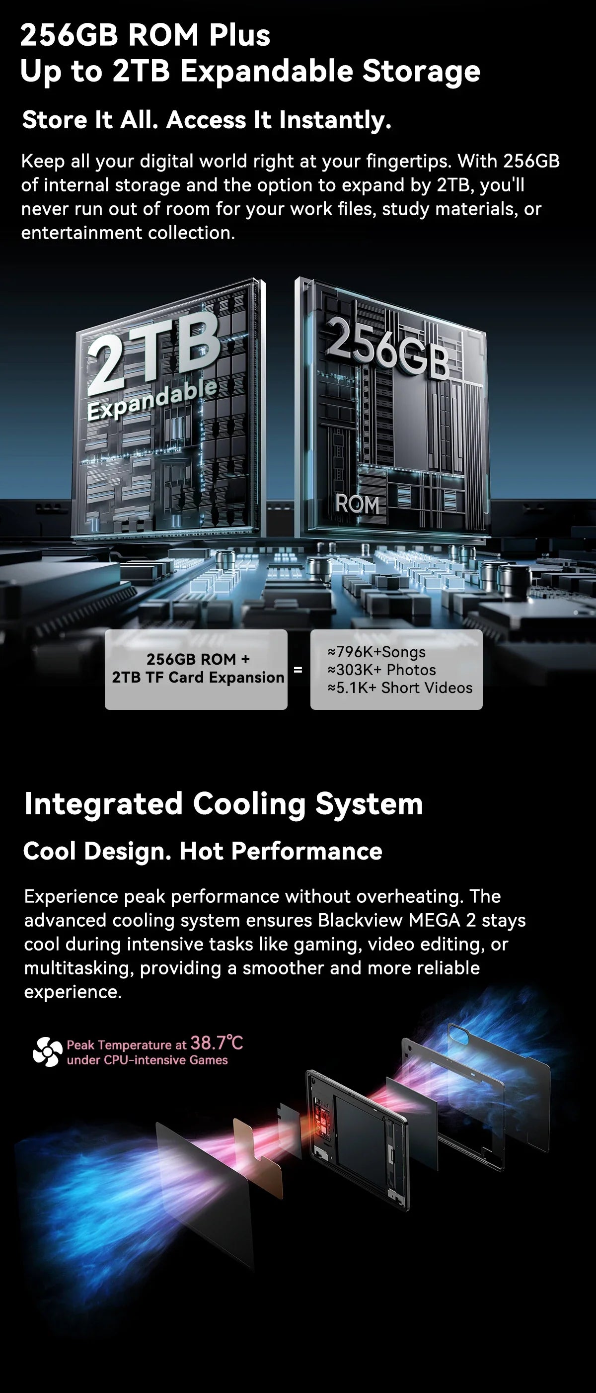 256GB ROM +Up to 2TB TF Card Expansion, USF2.2