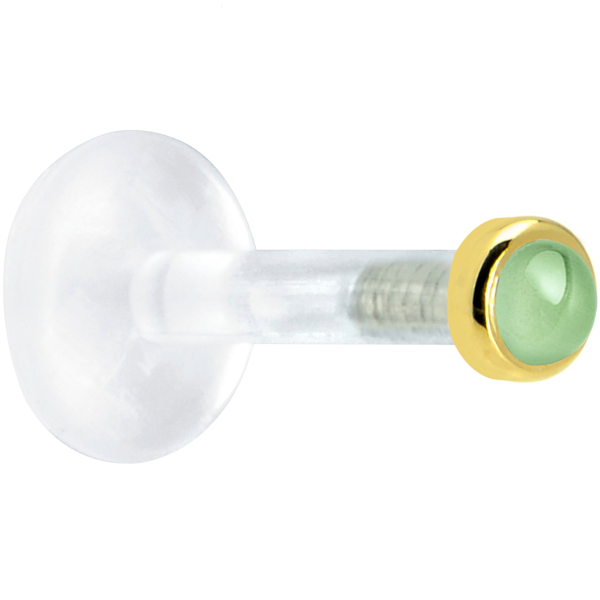 Comfort and quality are yours with this Solid 14k gold push fit monroe with bioplast stem. Customize your size by selecting the correct fit from the drop down above. This gold genuine Peridot monroe is available in both 14 gauge and 16 gauge widths, as well as 8mm and 10mm lengths and is fashioned with a 2mm genuine natural stone.