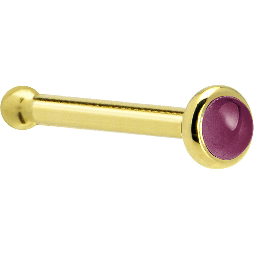Solid 14K Yellow Gold 2mm Genuine Raspberry Rhodolite Garnet Nose Ring