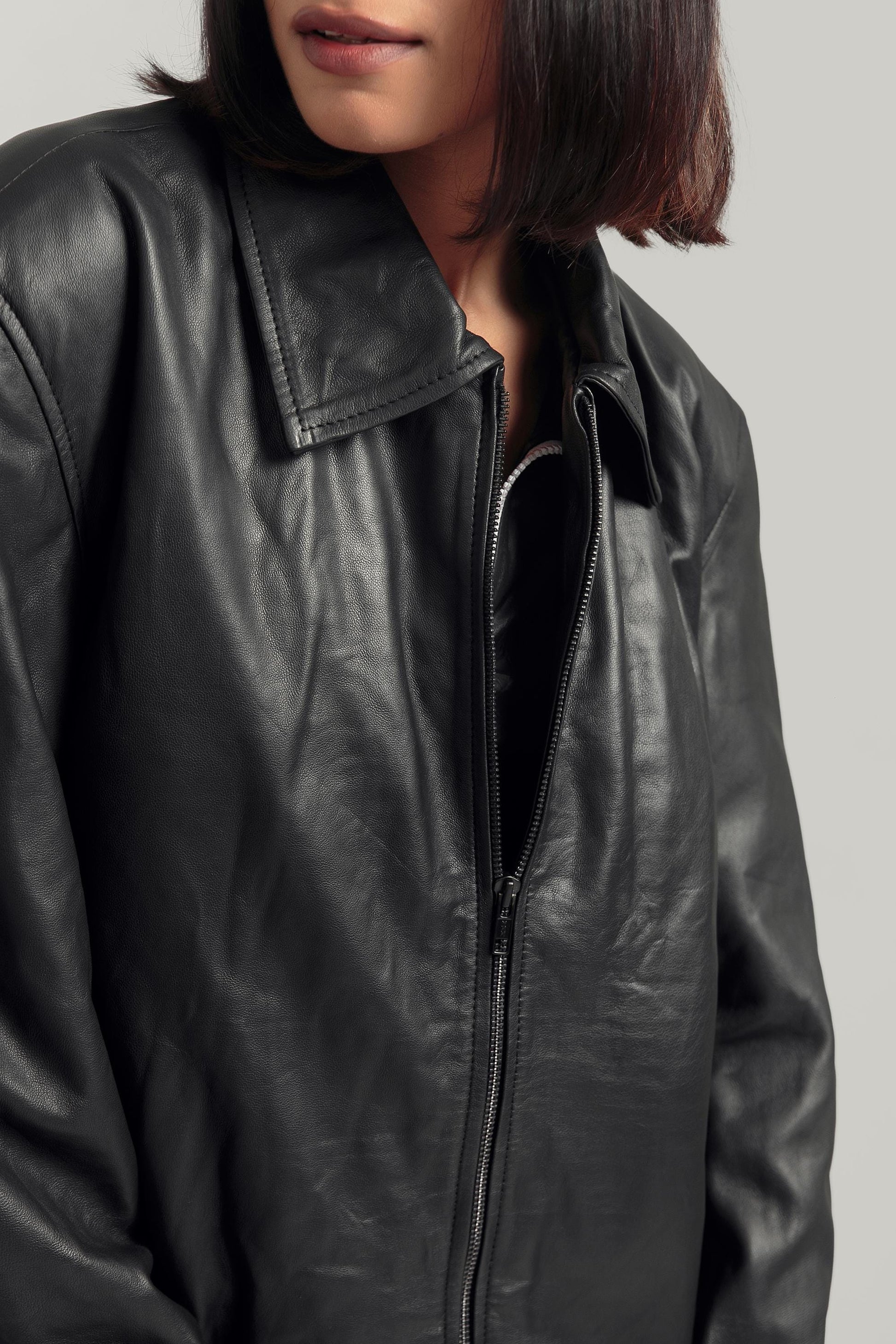 Oversized Baggy Women's Black Classic Bikers Jacket for Women's Retro Bomber Leather Jacket Handcrafted & Designed by Ox and Bulls