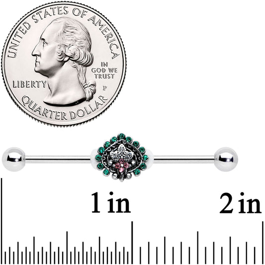 14G Pink Green Gem Stylized Leaf Industrial Barbell 38mm