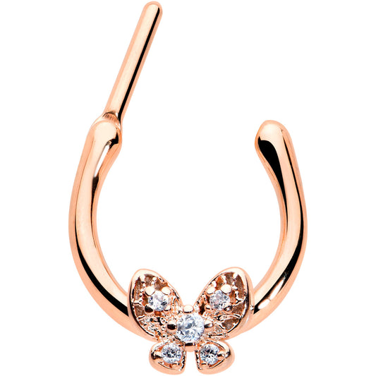16G 5/16 Clear Gem Rose Gold Tone Beauty Butterfly Cartilage Clicker