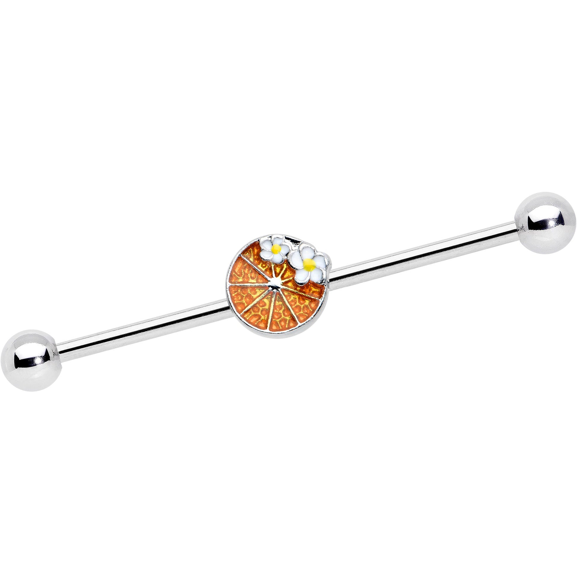 14G Sweet Orange Fruit Flower Industrial Barbell 38mm