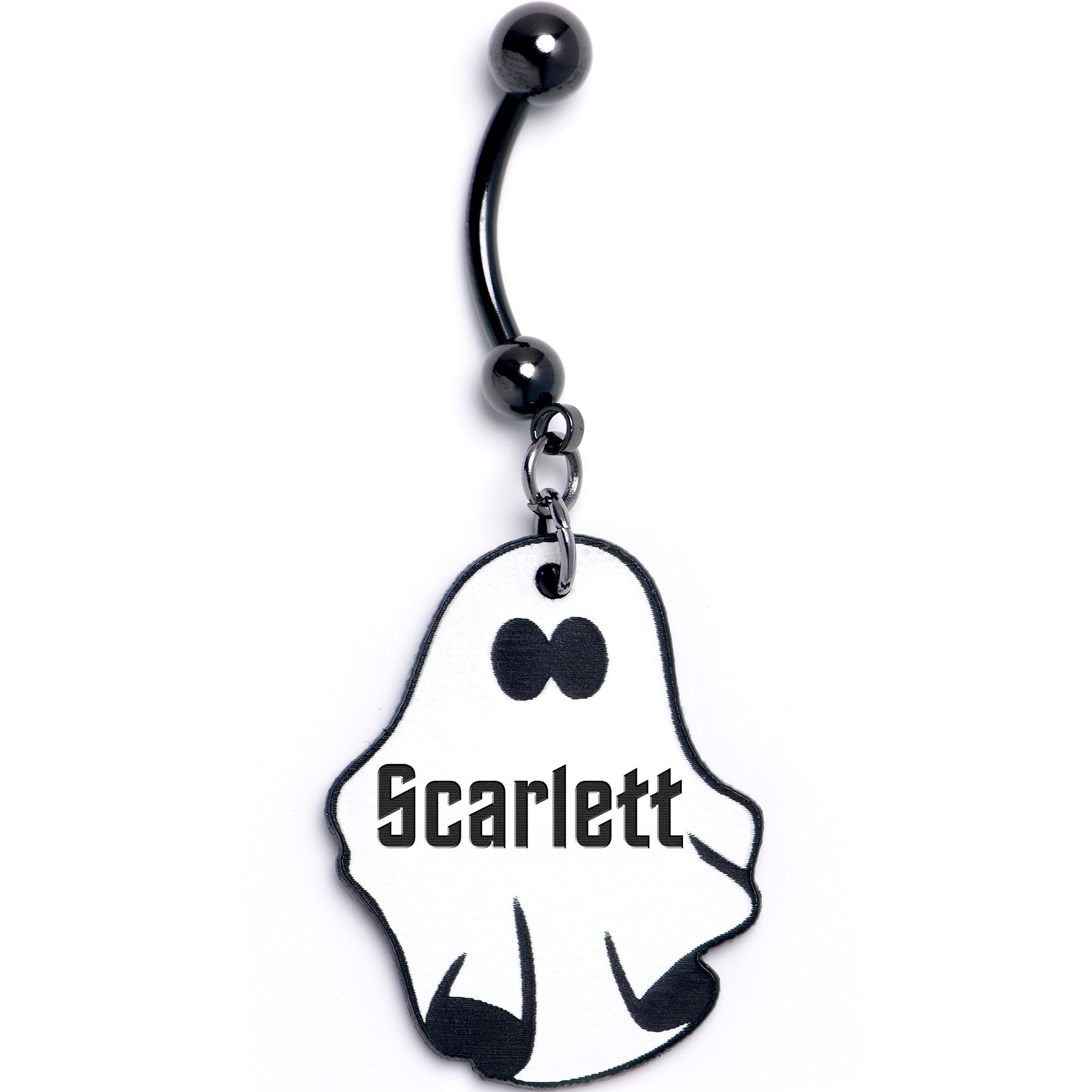 Custom Black Halloween Ghost Personalized Dangle Belly Ring