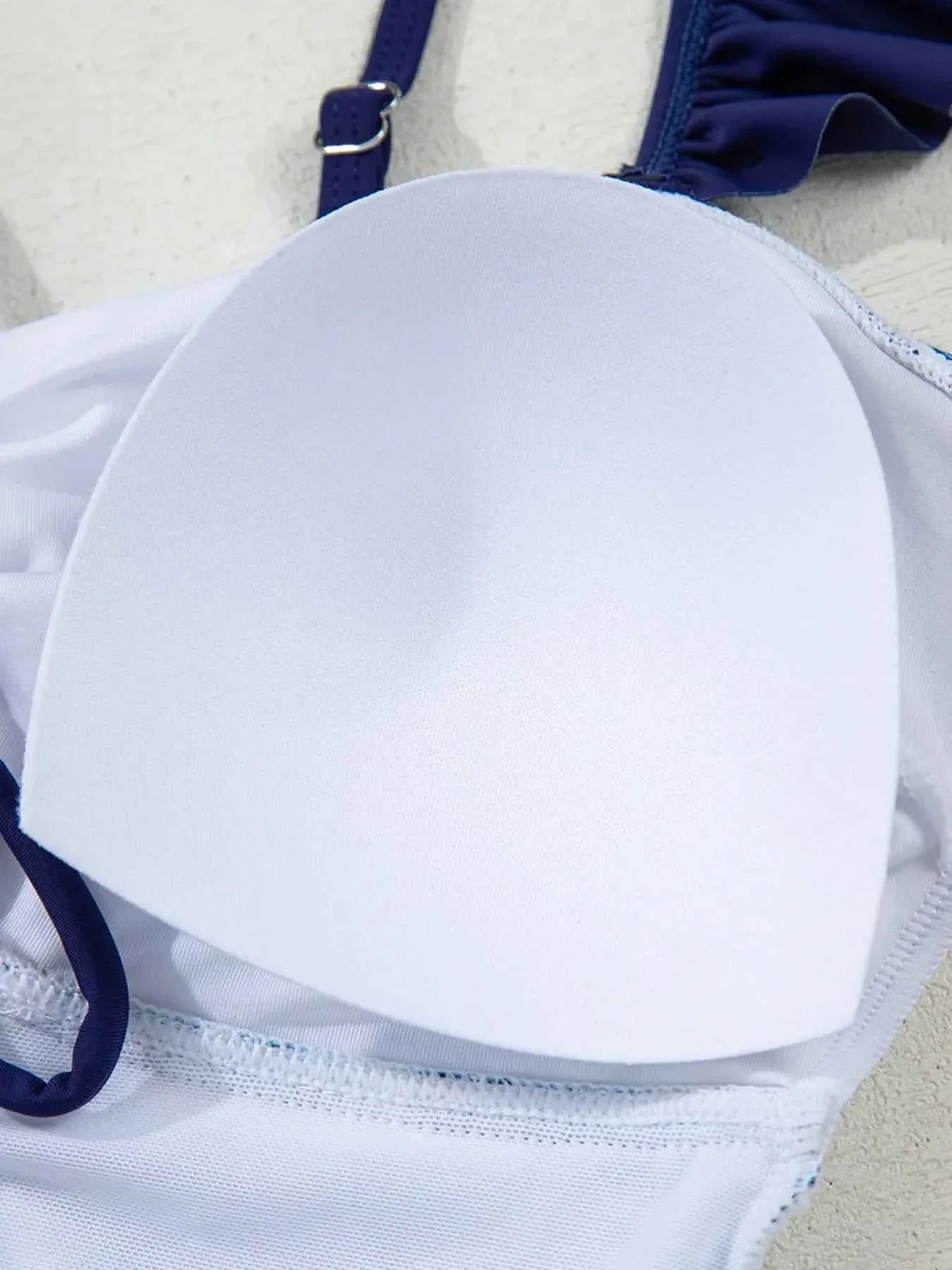 Cutout Ruffled Spaghetti Strap One-Piece Swimwear is the perfect combination of style and sophistication. This elegant design features a unique cutout and ruffled detailing that adds a touch of flair to your beach or poolside look. The spaghetti straps provide a delicate and feminine touch, while the one-piece silhouette offers both coverage and comfort.
