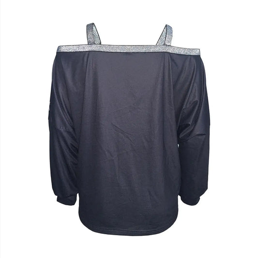 Women's Fashion New Chain Printed Sequin Cold Shoulder Long Sleeved Sweatshirt With Exposed Shoulder Top