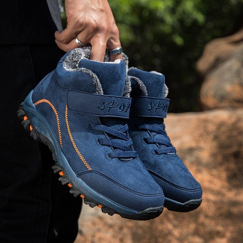 Waterproof Winter Mens Boots With Fur Warm Snow Mens Womens Boots Winter Work Casual Shoes High Top Winter Snow Boots Warm Fur Lined Winter Water-Resistan Ankle Booties
