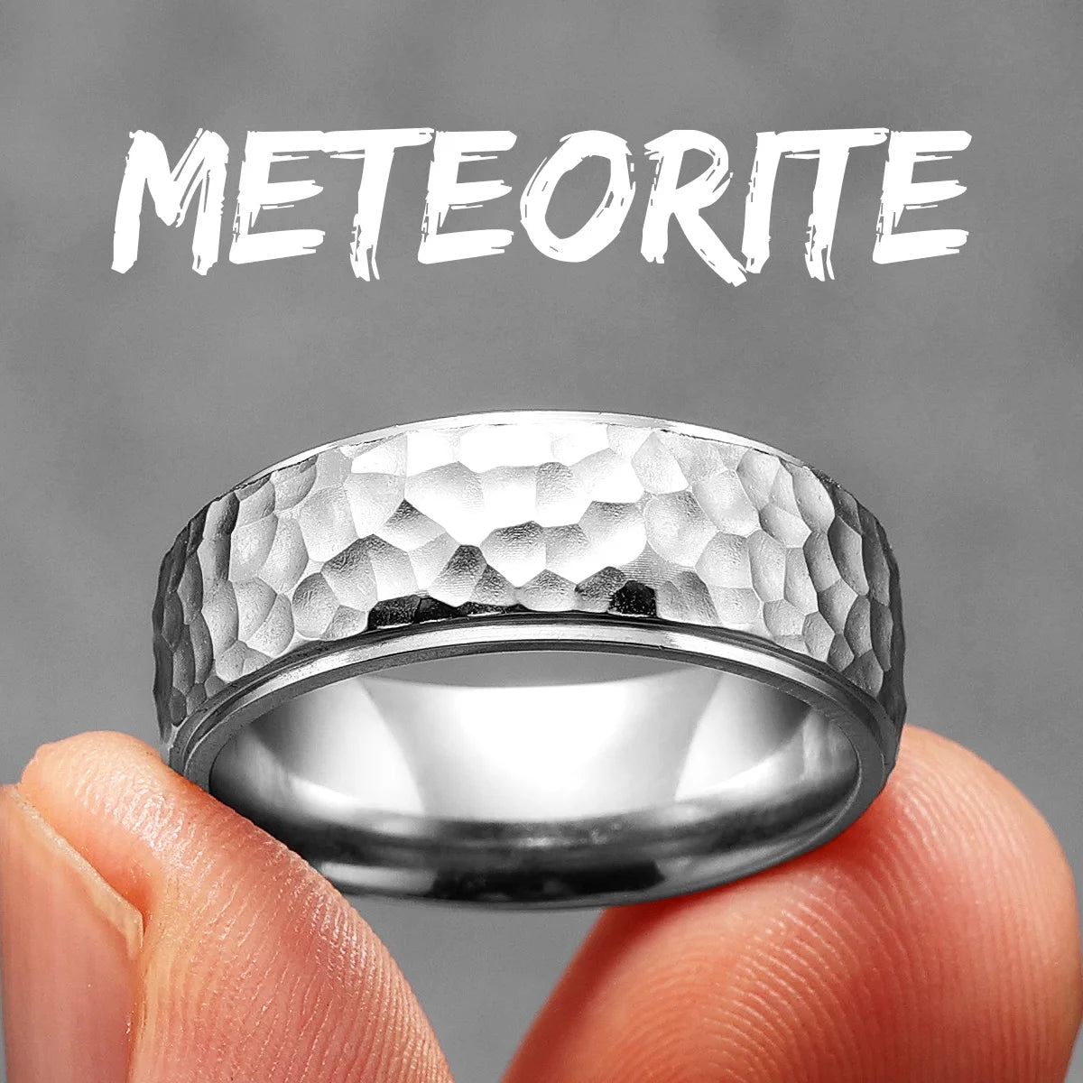 Forge Meteorite Fidget Spinner Ring | Stainless Steel Vintage Punk Jewelry for Men