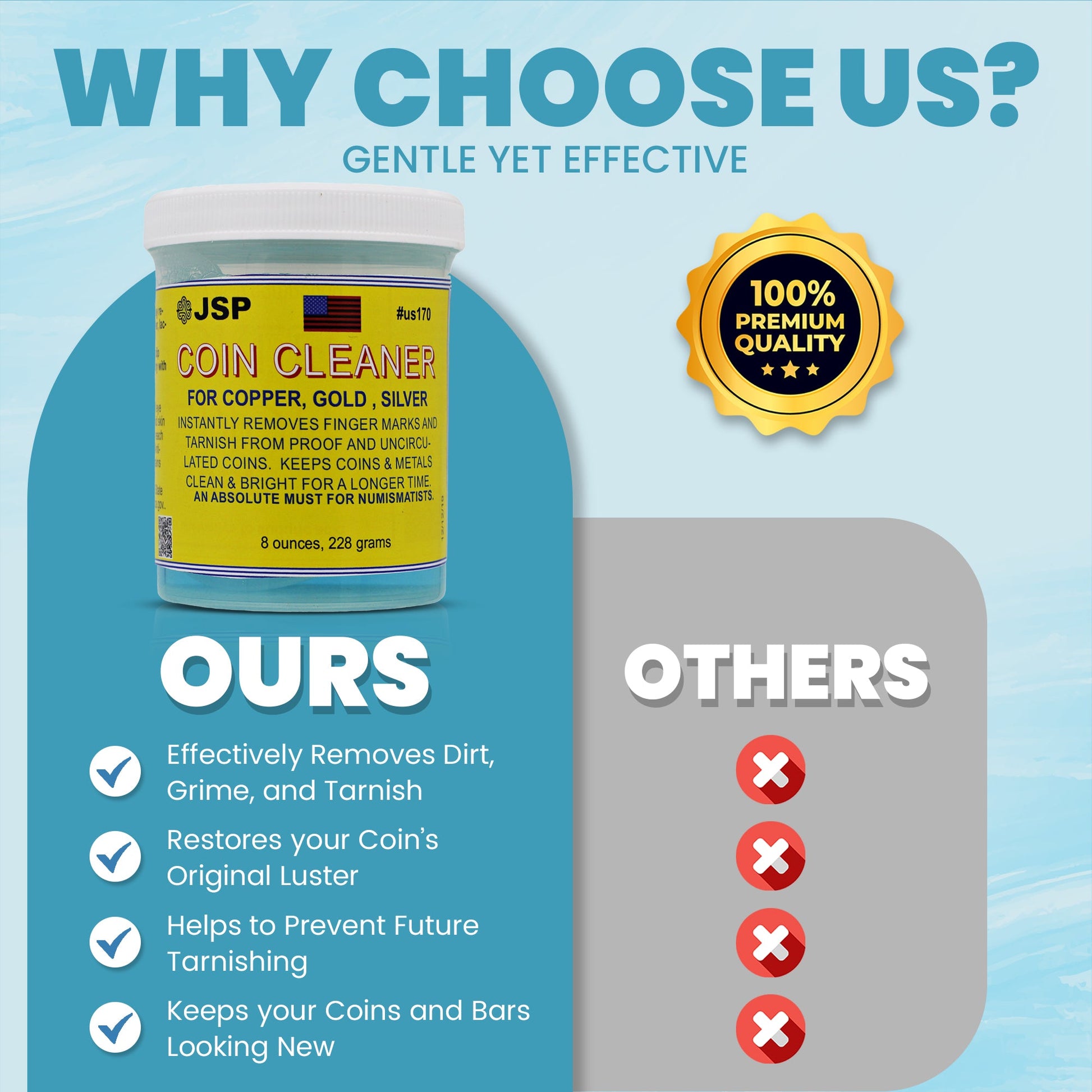 JSP Super Coin Cleaner 16 oz for Copper, Gold, Silver, & Platinum Precious Metals Jewelry Coins Bars