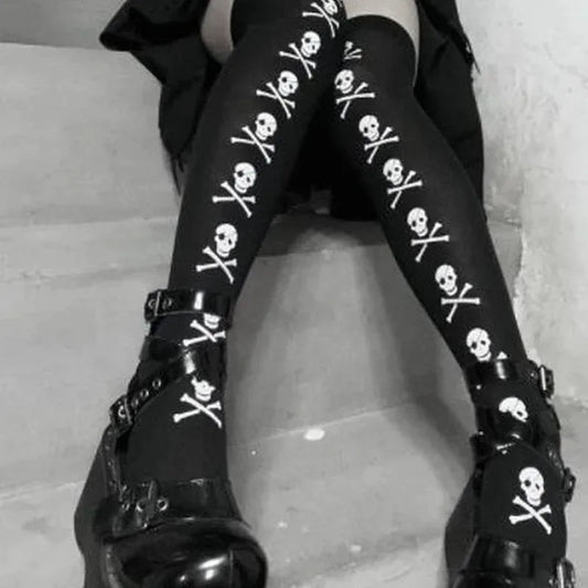 Unveil Your Dark Side with Skull Bat Gothic Long Sexy Stockings
