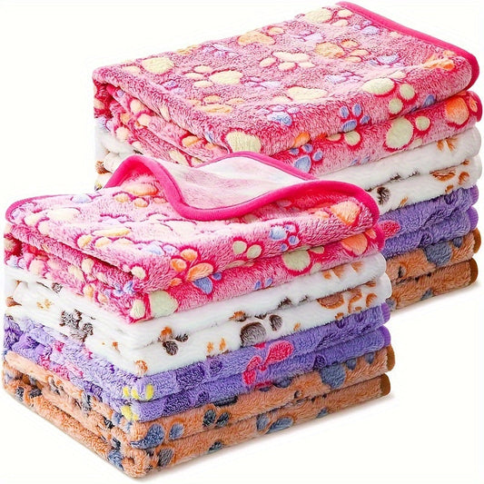 1pc Pet Blanket Dog Puppy Blanket Paw Print Coral Fleece Flannel Blanket Warm Soft Sleep Dog Blanket