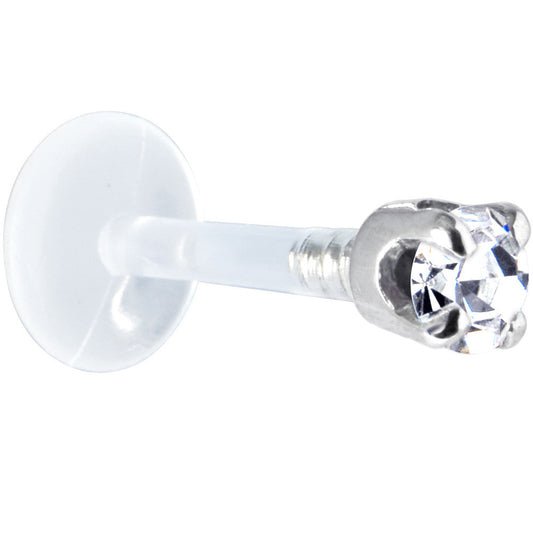 16G 1/4 Solid 14K White Gold 3mm Clear Cubic Zirconia Bioplast Tragus Earring Stud