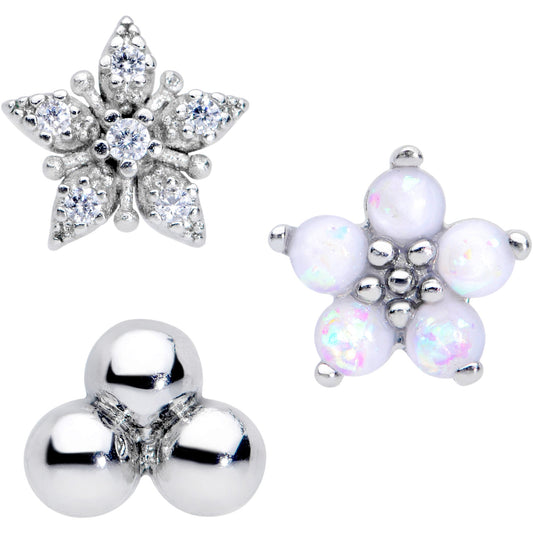 16G 5/16 CZ Gem White Faux Opal Bioplast Labret Tragus Set of 3