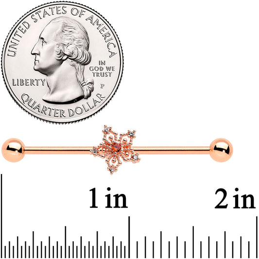 14G Red Gem Rosy Tone Texture Snowflake Industrial Barbell 38mm