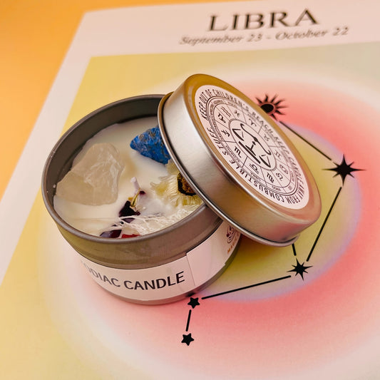 Handcrafted Libra Zodiac Scented Candle with Dried Flowers & Blue Wind Chime Fragrance - Ideal for Meditation, Yoga & Tarot - Perfect Gift for Christmas, Halloween, Easter & New Year -