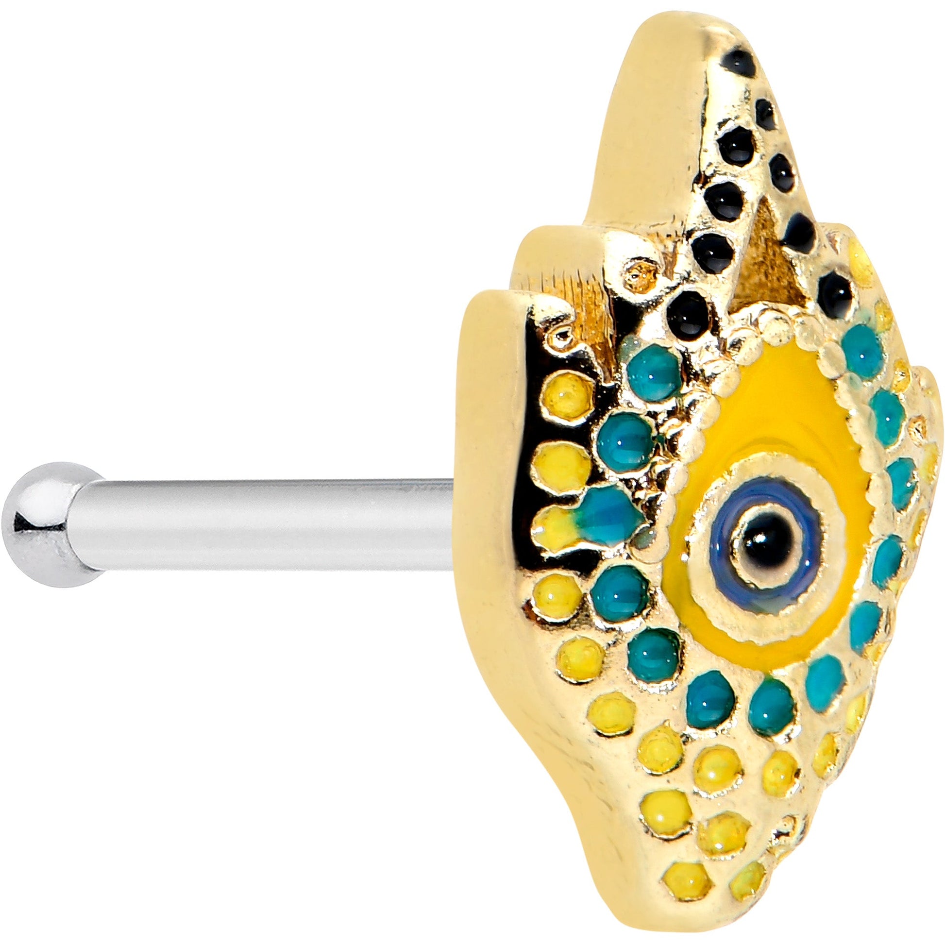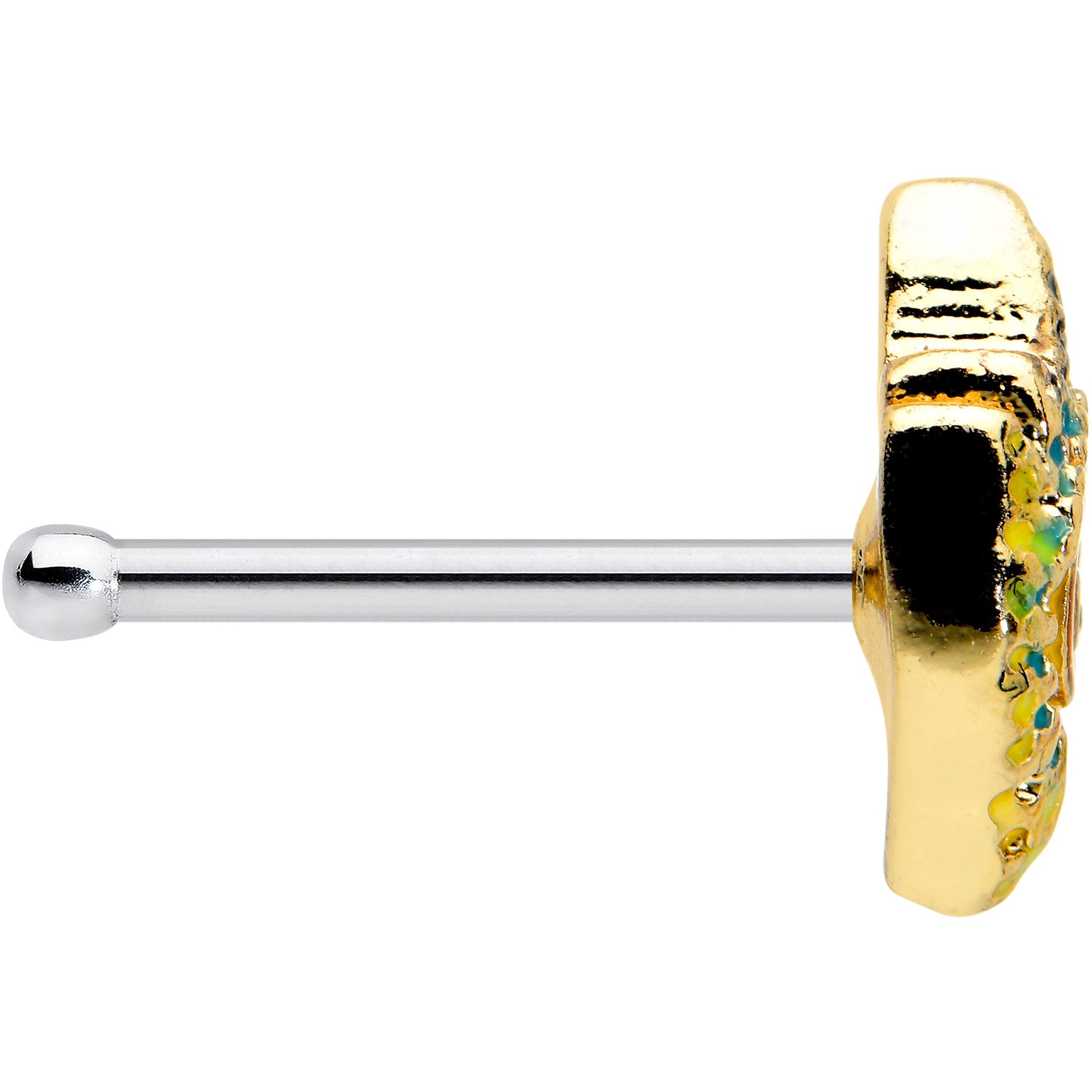 20G 1/4 Bold Peacock Feather Golden Nose Bone